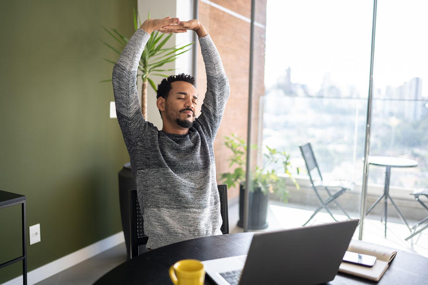 Avant une séance de sport, il est essentiel de s’échauffer pour préparer son corps aux efforts à fournir. S’il est plus limité qu’une pratique sportive en tant que telle, l’exercice physique effectué au travail n’échappe pas à la règle. Pour vous mettre doucement mais sûrement en conditions, vous pouvez commencer par des rotations et des inclinaisons de la tête : de gauche à droite et inversement, puis de haut en bas. L’objectif : se mettre progressivement en mouvement. Un premier exercice qui peut tout à fait être pratiqué assis à votre bureau.